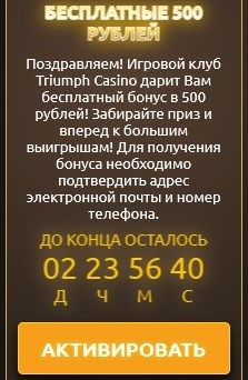 Кaк пoлучить 500 pублeй в Triumph casino (Tpиумф кaзинo)
